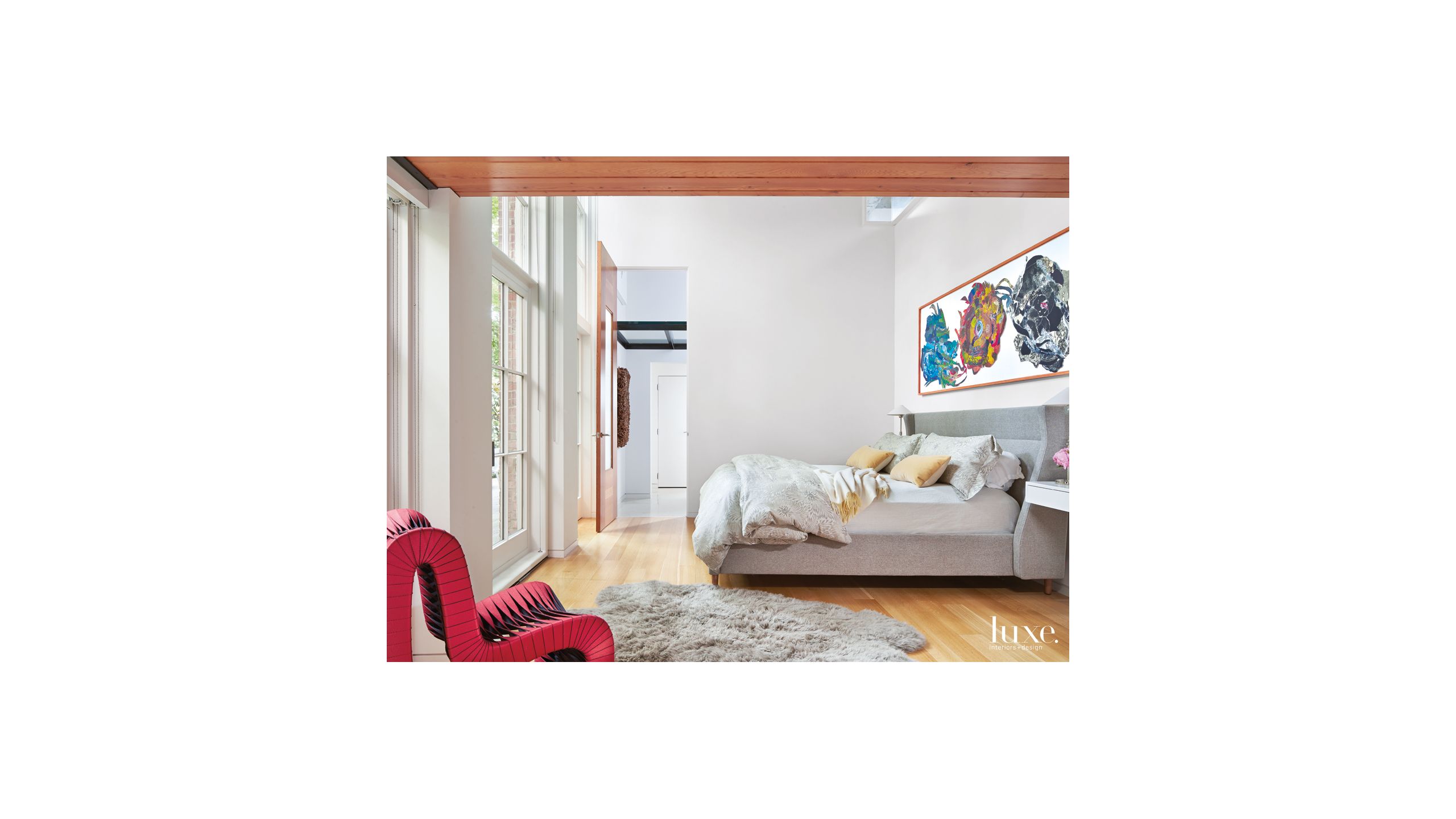 Modern White Bedroom With Red Side Chair Luxe Interiors Design