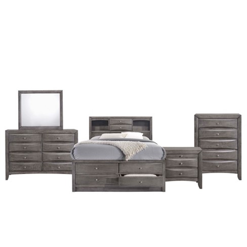 5pc Madison Full Storage Bedroom Set Gray Picket House